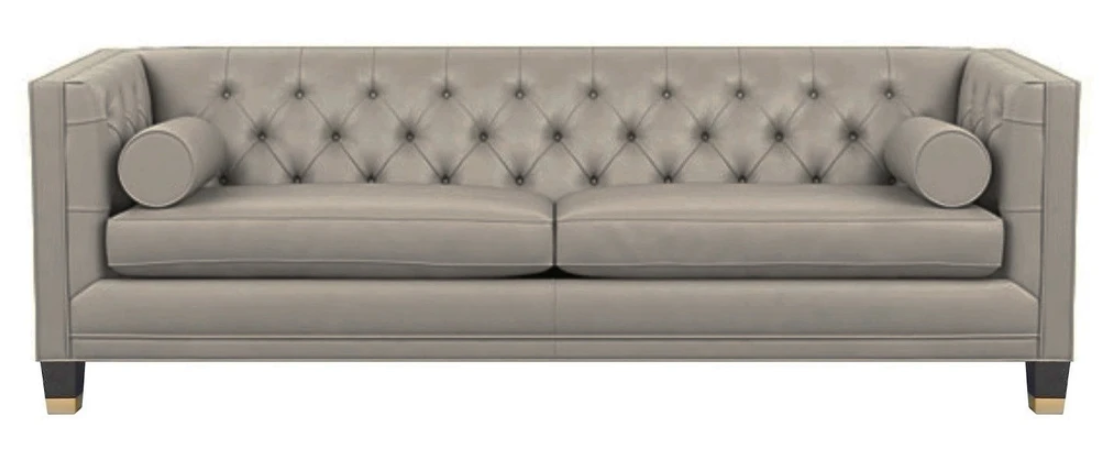 Das Taupe Dreisitzer Chesterfield Modern Design Couchen Leder Sofa Stoff Möbel Neu ist ein luxuriöses und stilvolles Möbelstück, das Eleganz und Komfort vereint. Mit Maßen von ca. 225 x 84 x 83cm bietet es großzügigen Platz für entspannte Stunden. Die Sitzhöhe von ca. 42cm und die Sitztiefe von ca. 55cm sorgen für ergonomisches Sitzen. Das hochwertige Material aus Leder in freier Farbwahl verleiht dem Sofa eine edle Optik. Optional sind verschiedene Materialien wie Premium Kunstleder/Stoff, Echtleder, Samtstoff oder Fleckenabweisender Stoff erhältlich. Das Innengestell aus echtem Holz und der Federkern bieten Stabilität und Langlebigkeit. Zudem kann das Sofa mit Kristallsteinen anstelle von Knöpfen verziert werden, um einen glamourösen Look zu kreieren.