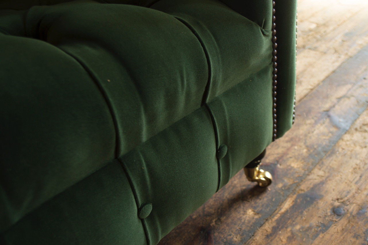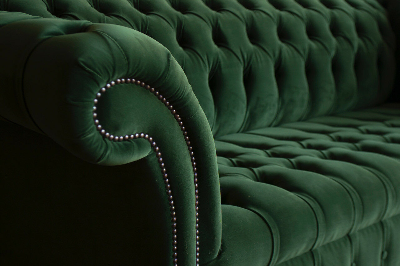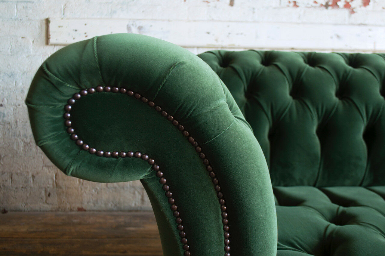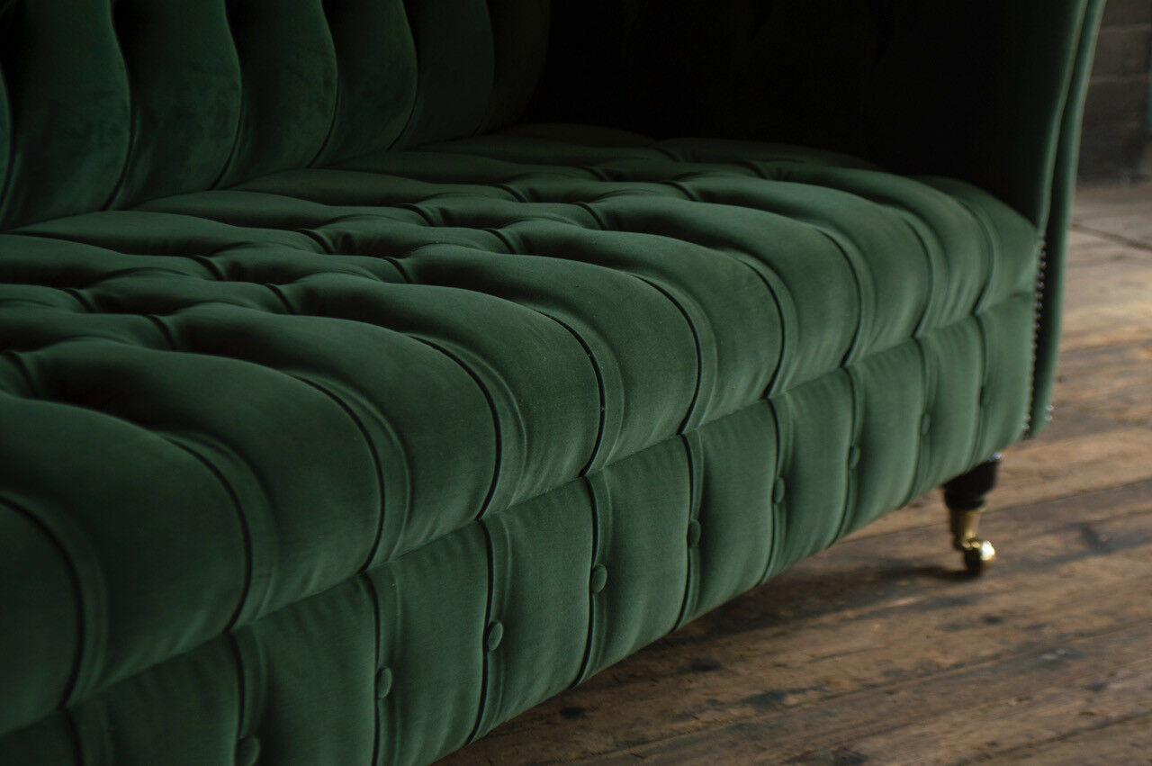 Klassische Chesterfield Design Couch 3 Sitzer Sofa Couch Samt Leder big grün neu