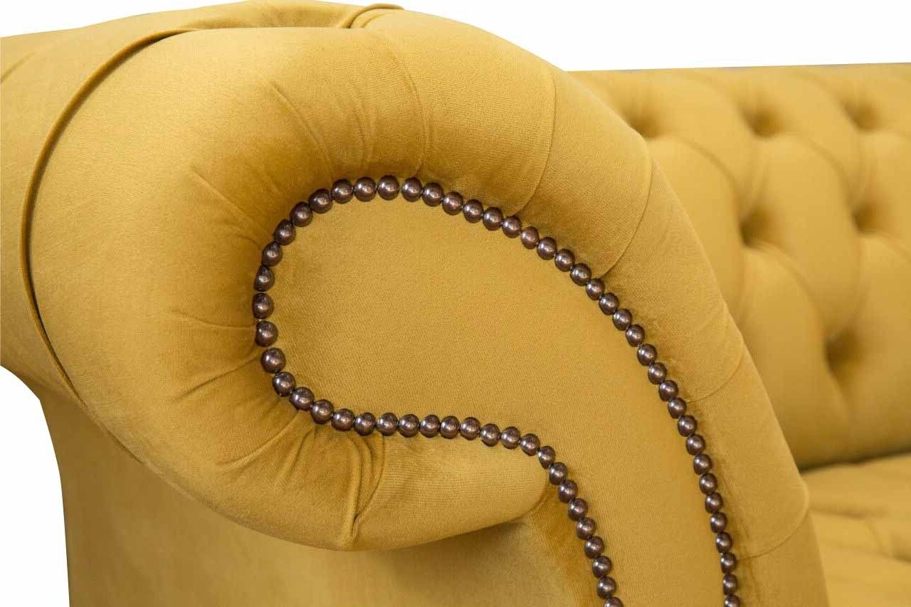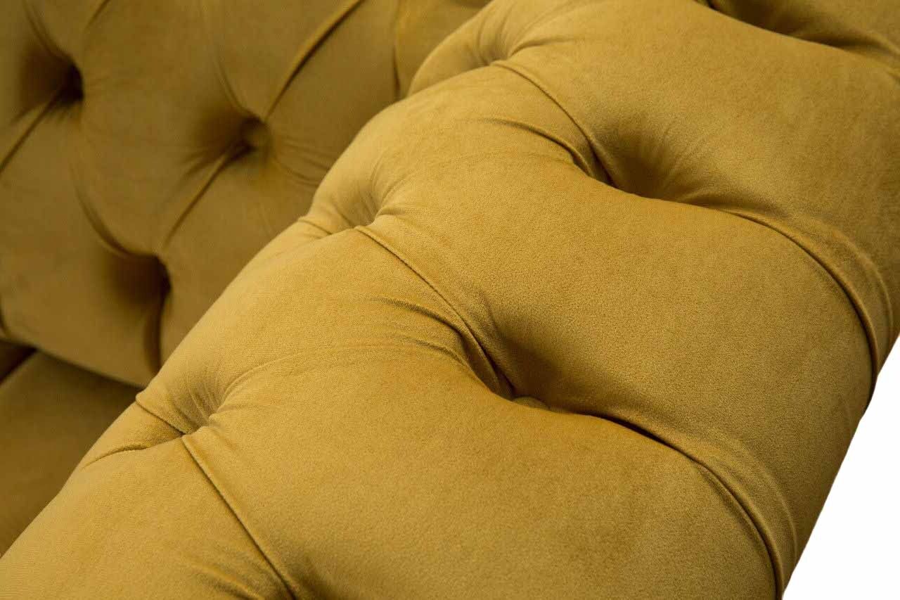 Entdecken Sie das Luxus Chesterfield Textil Polster Sofa von XL Moebel! Dieses exklusive Designersofa bietet nicht nur Komfort, sondern auch Eleganz für Ihr Wohnzimmer. Mit Maßen von ca. 245 x 80 x 90 cm und Platz für 4 Personen lädt dieses Sofa zum Entspannen und Verweilen ein. Wählen Sie aus verschiedenen Farben und Materialien, darunter Premium Kunstleder, Echtleder, samtiger Stoff oder sogar Fleckenabweisender Stoff. Optional können Sie das Sofa mit Bettfunktion und Matratze für zusätzlichen Komfort ergänzen. Das Innengestell aus echtem Holz und Federkern sorgt für Stabilität und Langlebigkeit. Und für ein Hauch von Luxus bieten wir die Option, Knöpfe mit funkelnden Kristallsteinen oder sogar echten Swarovski Kristallen zu veredeln. Erleben Sie den Luxus in Ihrem Zuhause und lassen Sie sich von unserem Chesterfield Sofa begeistern. Optional sind weitere Größen erhältlich, und individuelle Maßanfertigungen sind auf Anfrage möglich. Gönnen Sie sich ein Stück Luxus mit dem Chesterfield Textil Polster Sofa!