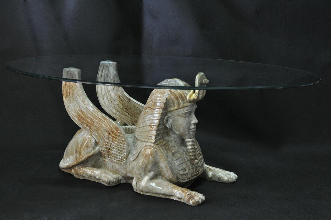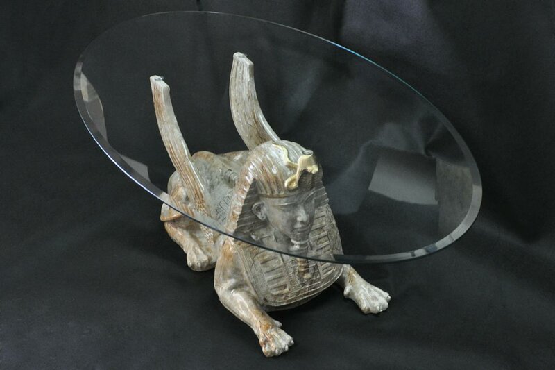 Couchtisch Tisch Glastische Tische Pharao Sphinx Beistell Glas Ägypten 120x60cm