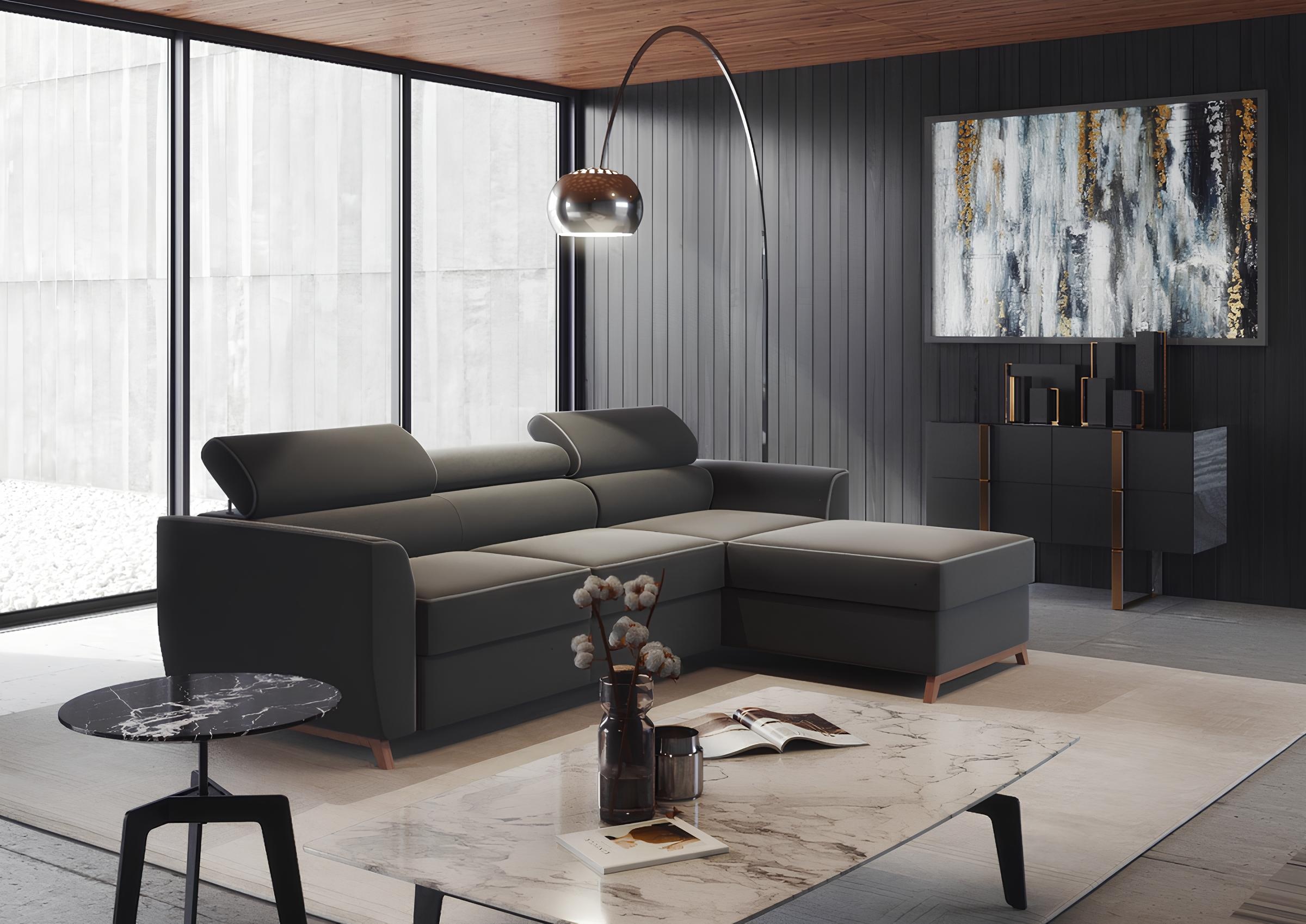 Canapeaua colțară gri modernă redefinește conceptul de eleganță contemporană, integrându-se perfect în orice interior rafinat. Realizată dintr-o țesătură de cea mai bună calitate, nu doar că oferă confort optim, dar și un aspect sofisticat, ce îmbogățește atmosfera casei dumneavoastră. Designul său modern conturează linii curate și proporții armonioase, transformând fiecare colț al încăperii într-un spațiu exclusivist. Alegerea acestei canapele reprezintă o investiție în stilul de viață premium, reflectând o estetică atent gândită. Cu două decenii de experiență în furnizarea de mobilier de lux, brandul nostru îmbină tradiția cu inovația, oferind o selecție diversificată pentru un ambient cu adevărat aparte.