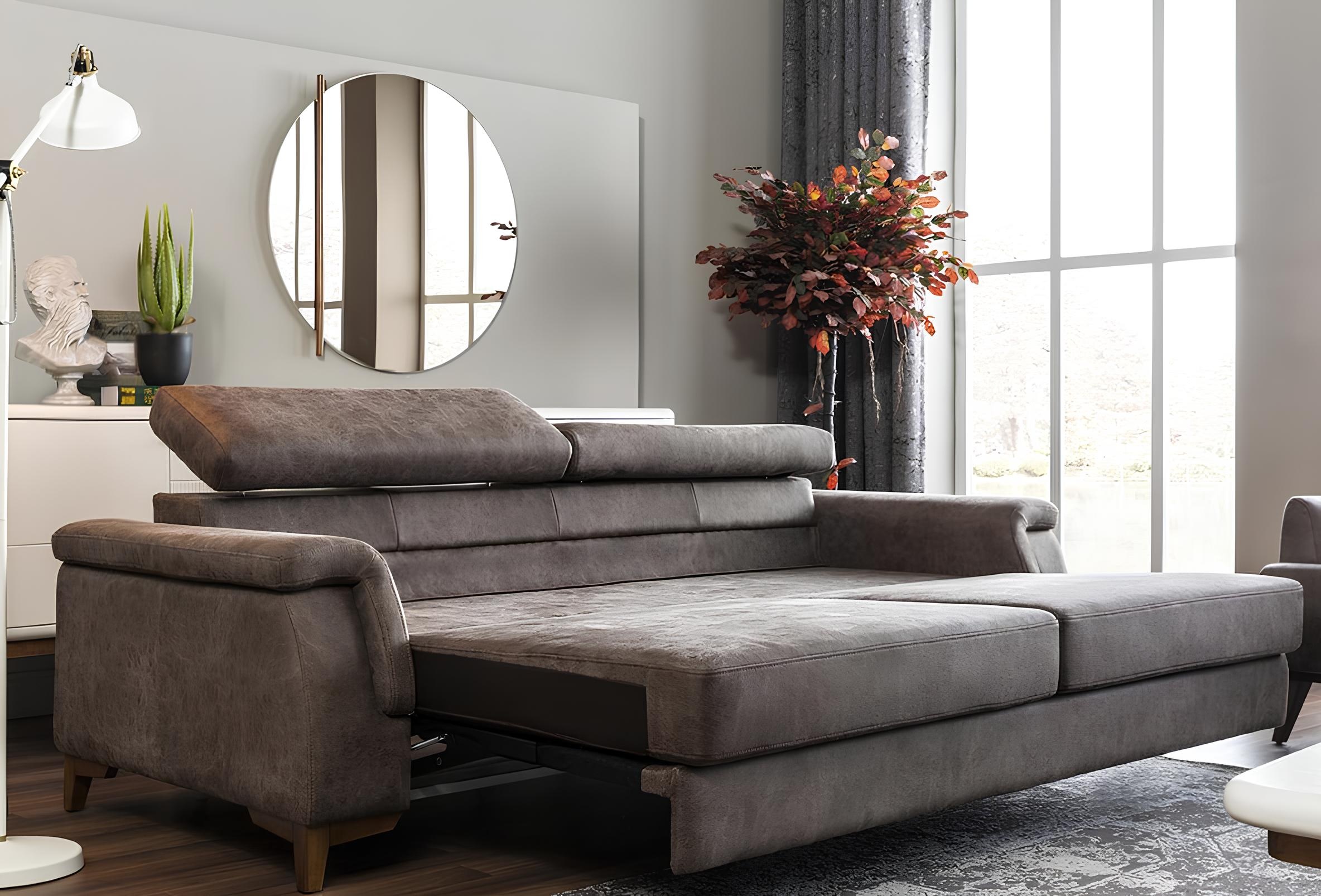 Canapea gri cu trei locuri și funcție de pat | xlmobila.ro