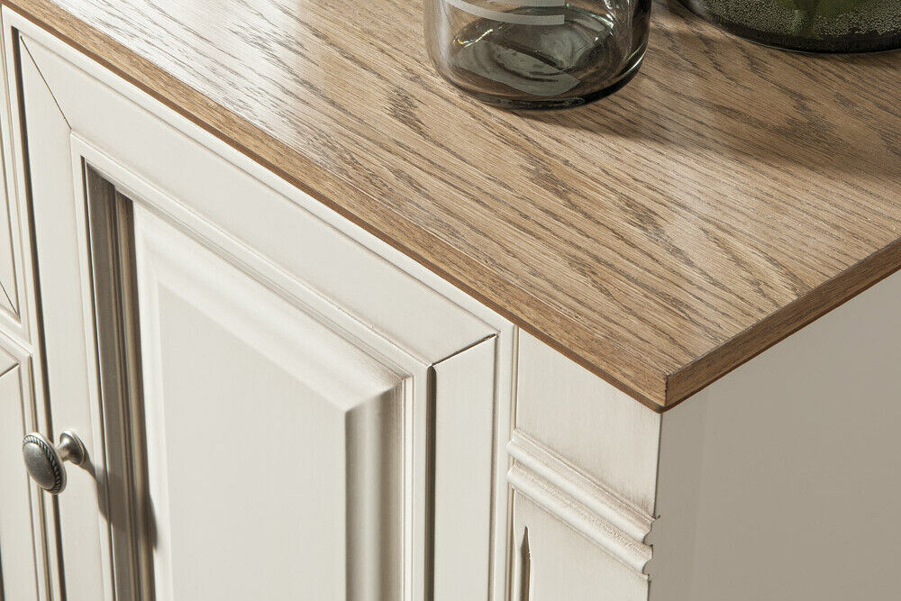 Rückwand & Einlegeböden: MDF (Mittledichte Holzfaserplatte), funiert & lackiert