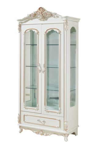 Vitrine Weiß Luxus Wohnzimmer Möbel Holz Glas Design Elegantes Klassische