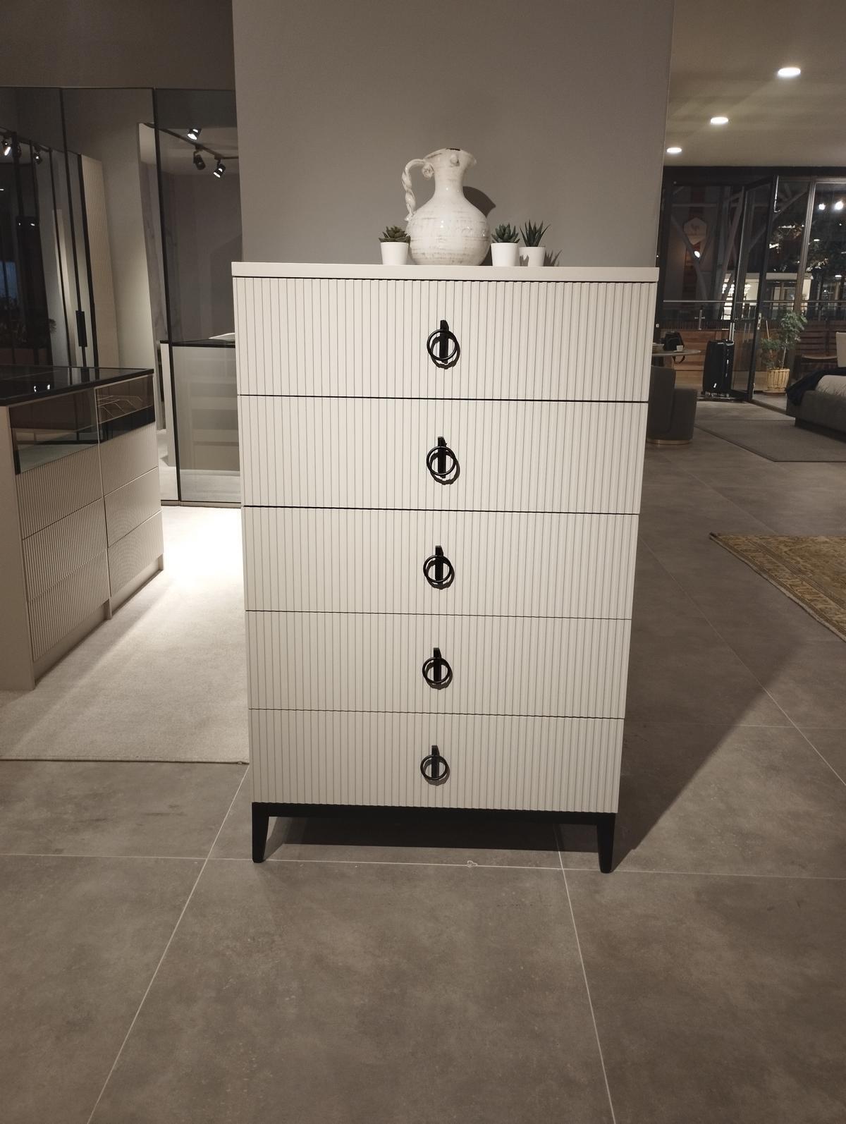 Die klare Linienführung und das minimalistische Design machen diese Kommode zu einem zeitlosen Möbelstück, das Ihnen über Jahre hinweg Freude bereiten wird. Ob als praktisches Aufbewahrungselement oder dekoratives Highlight – diese Kommode ist vielseitig einsetzbar und lässt sich leicht in Ihr bestehendes Schlafzimmerkonzept integrieren.