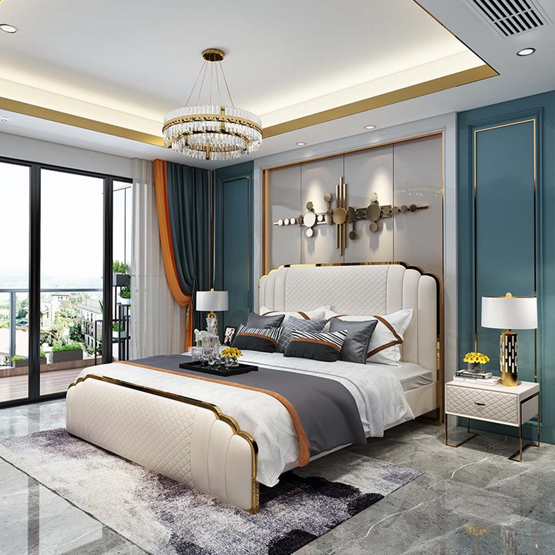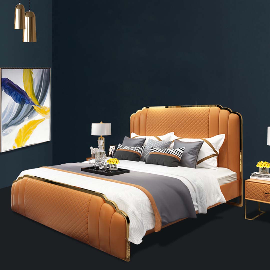Design Lederbett Schlafzimmer 3tlg. Set 2x Nachttisch Betten Luxus Möbel