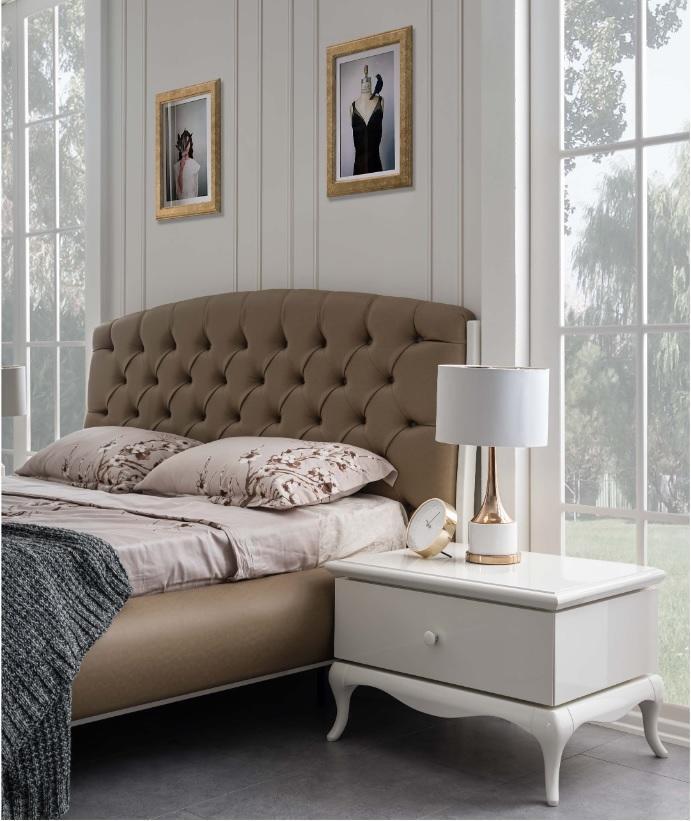 Weißes Bett, Komplettes Schlafzimmer Set, Doppelbett Garnitur, 6tlg Bett