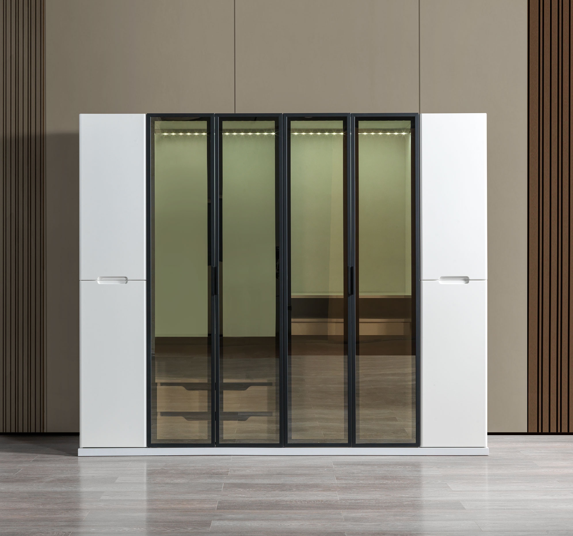 Dulapul modern de 255 cm redefinește eleganța contemporană, îmbinând funcționalitatea cu un design rafinat. Finisat într-o nuanță pură de alb, acest mobilier devine un element central al oricărei încăperi, aducând un aer de sofisticare și lumină. Construit cu meticulozitate din materiale de cea mai înaltă calitate, dulapul oferă un spațiu generos de depozitare, perfect pentru o viață organizată și stilată. Detaliile subtile și liniile curate reflectă o estetică minimalistă, ideală pentru un ambient exclusivist. Alege acest dulap pentru a completa un interior care vorbește despre rafinament și despre un stil de viață de lux, caracteristic celor care apreciază excelența.