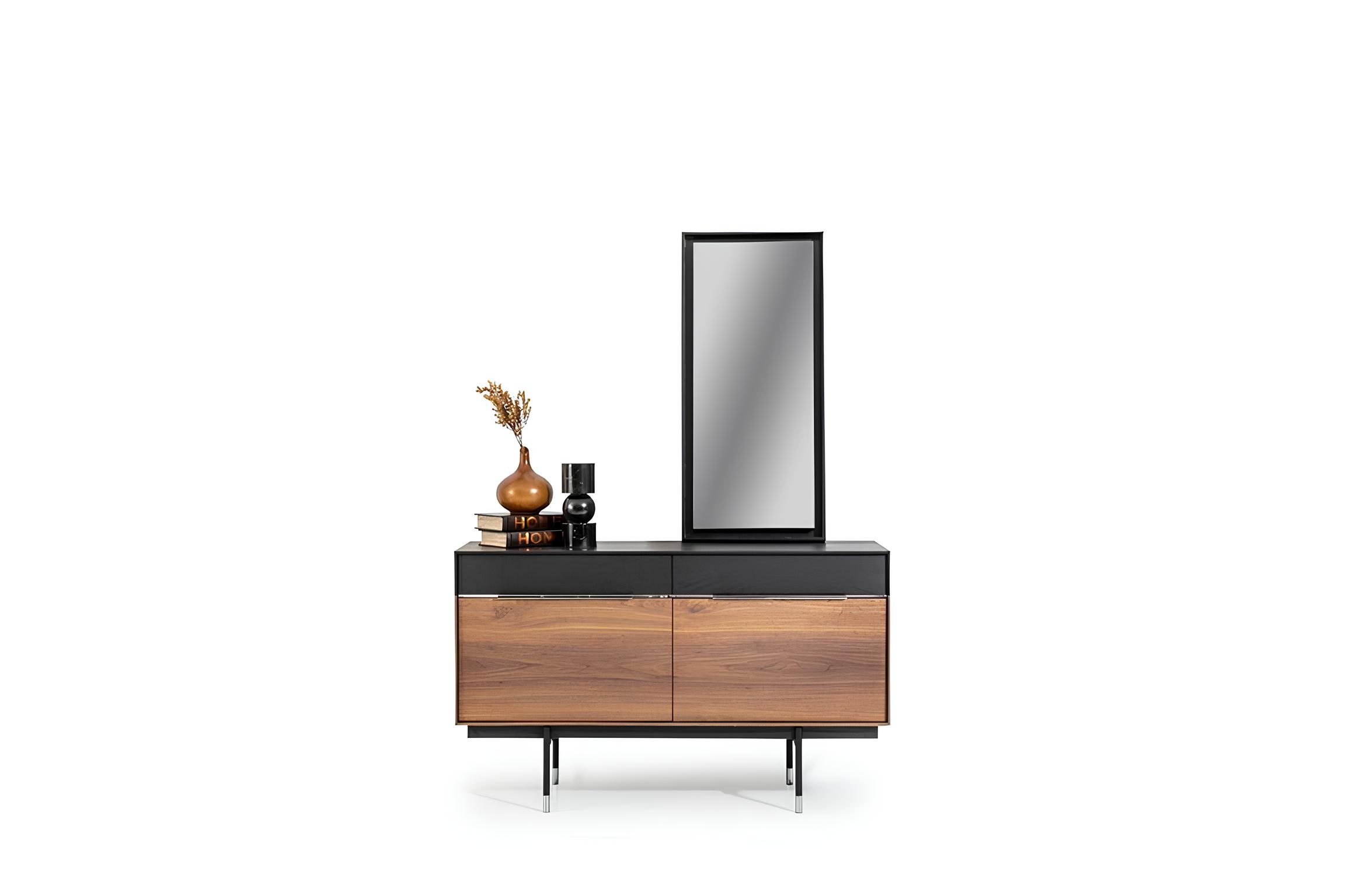 Îmbinați eleganța cu funcționalitatea prin acest set sofisticat de dulap și oglindă, o alegere perfectă pentru un interior rafinat. Cu un design contemporan și o nuanță caldă de maro, fiecare piesă este realizată din materiale premium, asigurând durabilitate și un aspect deosebit. Dulapul oferă un spațiu generos de depozitare, ideal pentru organizarea eficientă a garderobei, în timp ce oglinda amplifică lumina naturală, creând o atmosferă aerisită. Această combinație exclusivistă reflectă un stil de viață distins, transformând orice cameră într-un sanctuar al rafinamentului. Alegeți să vă înconjurați de lux și să vă exprimați personalitatea prin piese de mobilier ce emană stil și eleganță.