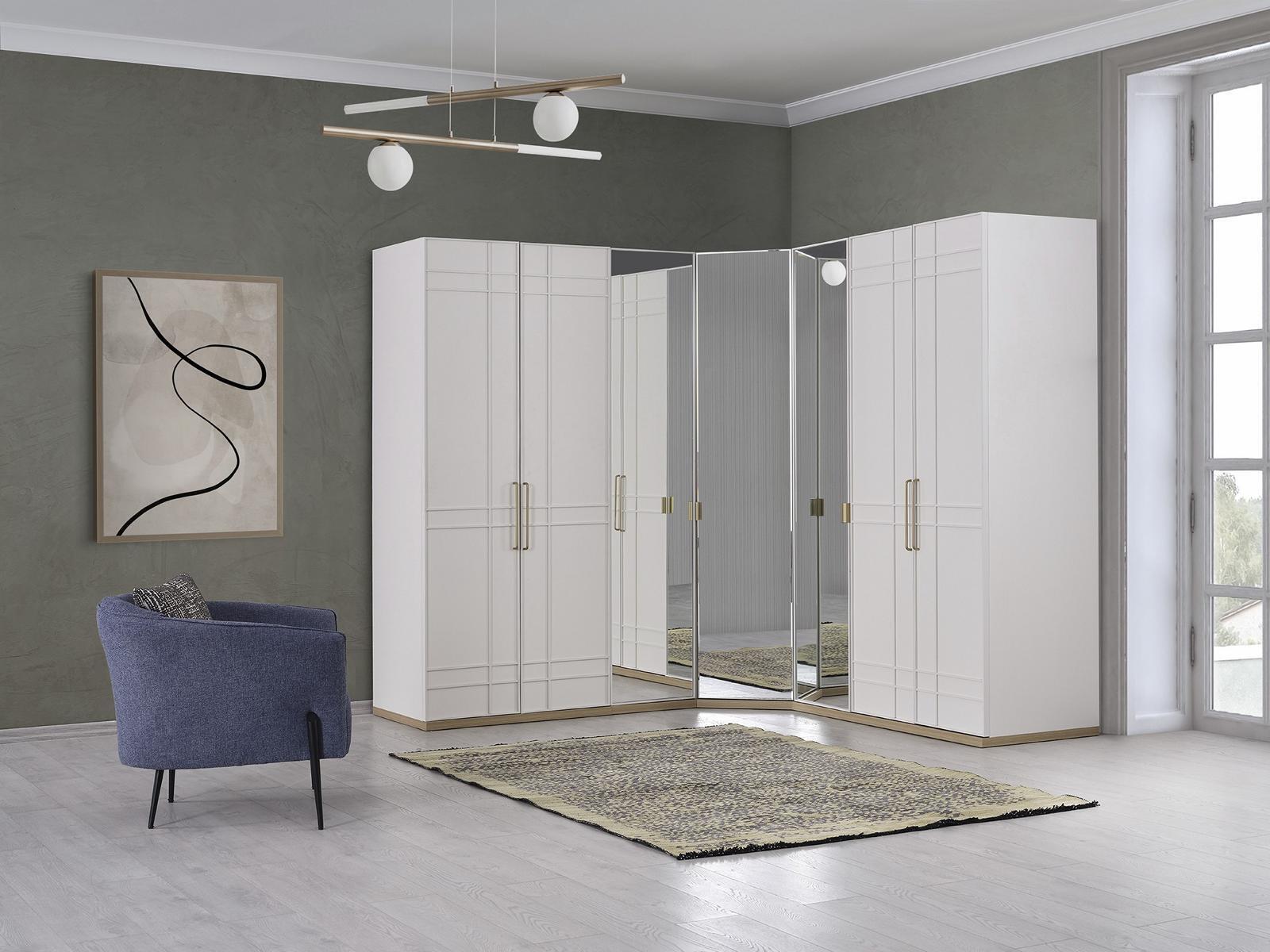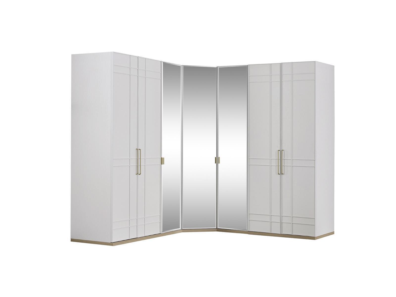 Eckschrank Kleiderschrank Schränke Weiß Holz Spiegel 7 Türen Groß