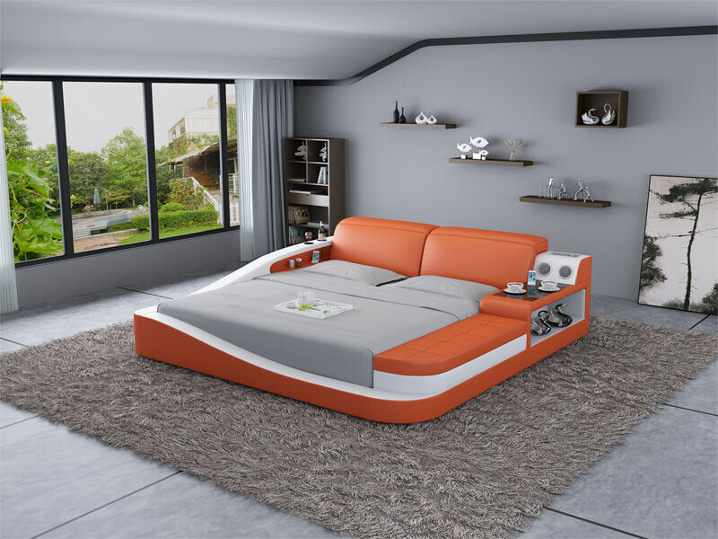 Luxus Schlafzimmer Bett Polster Design Leder Doppel Hotel Betten Textil