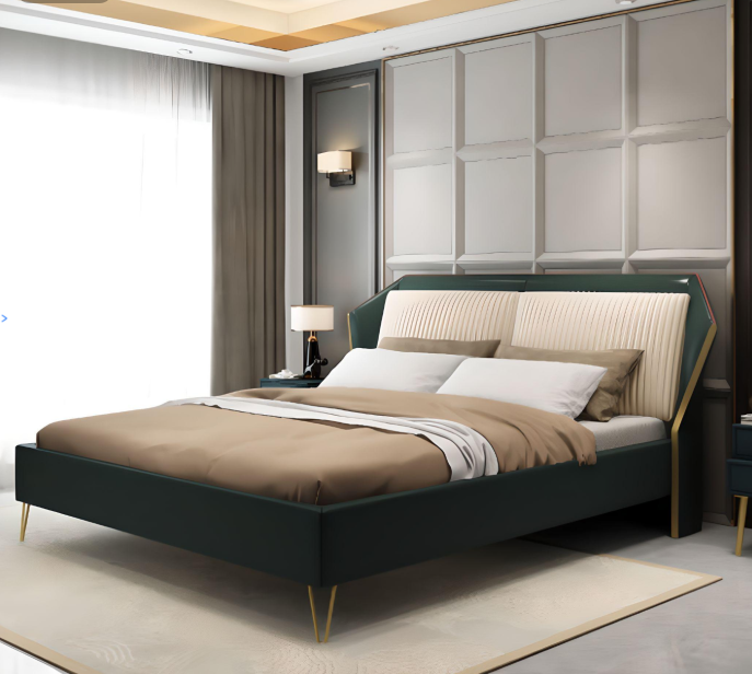 Luxus Textil Bett Doppel Design Schlafzimmer Betten Metall Grün Neu