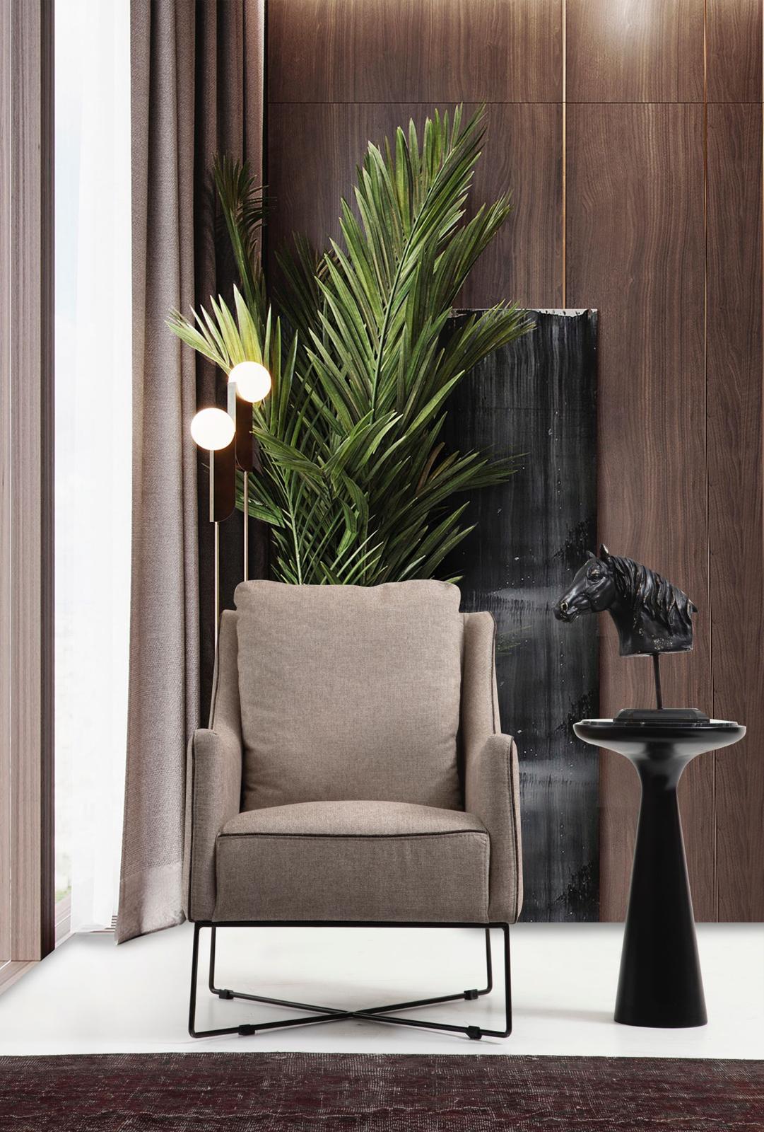 Ohrensessel Sessel Sitzer Cocktailsessel Stoff Wohnzimmer Modern Beige