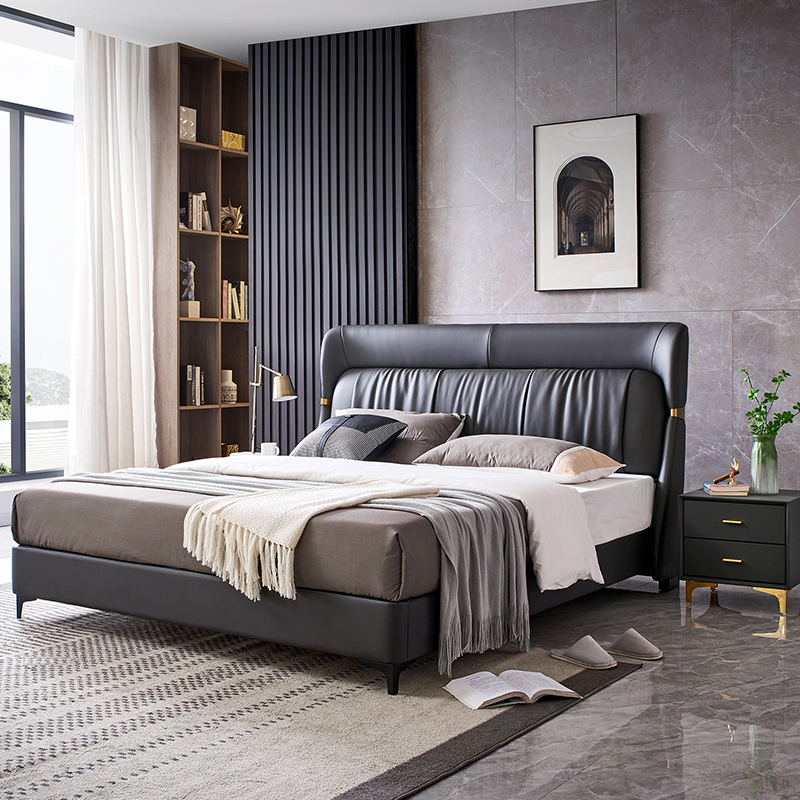Luxus Bett Schlafzimmer Leder Polster Deko Doppel Betten Metall Design