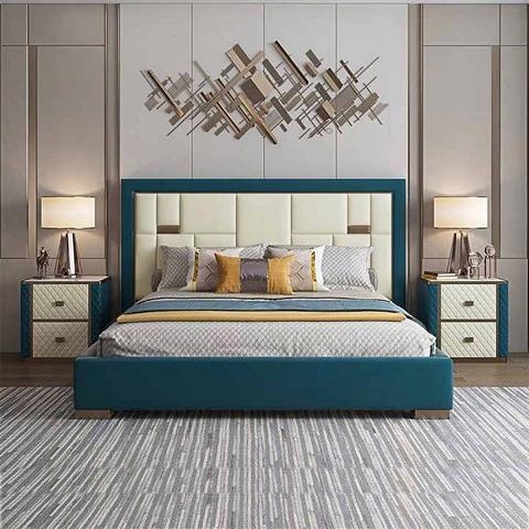 Patul de lux albastru cu tăblie tapițată modernă aduce un suflu contemporan în orice dormitor, transformând fiecare noapte într-o experiență de rafinament. Realizat dintr-o țesătură de înaltă calitate, acest pat emană o eleganță subtilă prin nuanțele sale vibrante de albastru, care captează lumina și creează o atmosferă plăcută. Designul său sofisticat se îmbină perfect cu standardele înalte ale unui stil de viață exclusivist, oferind nu doar confort, ci și un statement de stil. Alege acest pat pentru a completa un ambient luxurious, reflectând astfel aprecierea ta pentru detalii fine și excelență în mobilier. Este mai mult decât un simplu pat; este o afirmație de eleganță.