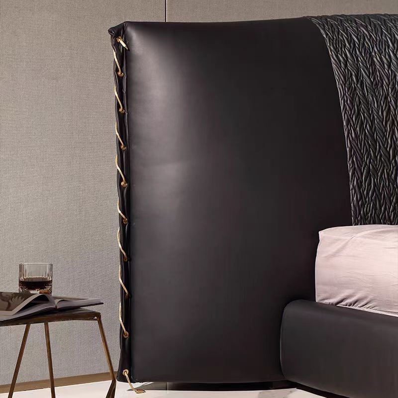 Patul modern negru, tapițat, luxos, exclusiv, redefinește eleganța în dormitorul dumneavoastră. Realizat dintr-o țesătură de cea mai înaltă calitate, acest pat emană rafinament și stil, fiind ideal pentru cei care apreciază designul sofisticat. Cu o siluetă contemporană, acest pat nu doar că oferă confortul necesar, dar și o notă distinctivă, transformând orice spațiu într-un sanctuar al relaxării. Fiecare detaliu este gândit pentru a reflecta un stil de viață exclusivist, perfect pentru cei care doresc să se înconjoare de frumusețe și calitate. Alegeți acest pat ca simbol al eleganței și al bunului gust, subliniind astfel personalitatea unui cămin dedicat luxului.