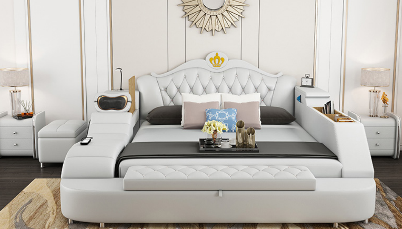 Luxus Bett Leder Betten 180x200 Multifunktion Schlafzimmer Liege Regale Neu
