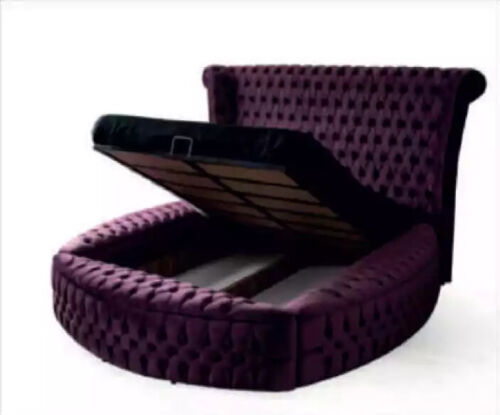 Rundes Chesterfield Bett Lila Betten Möbel Samt Textil Hotel Einrichtung Doppel
