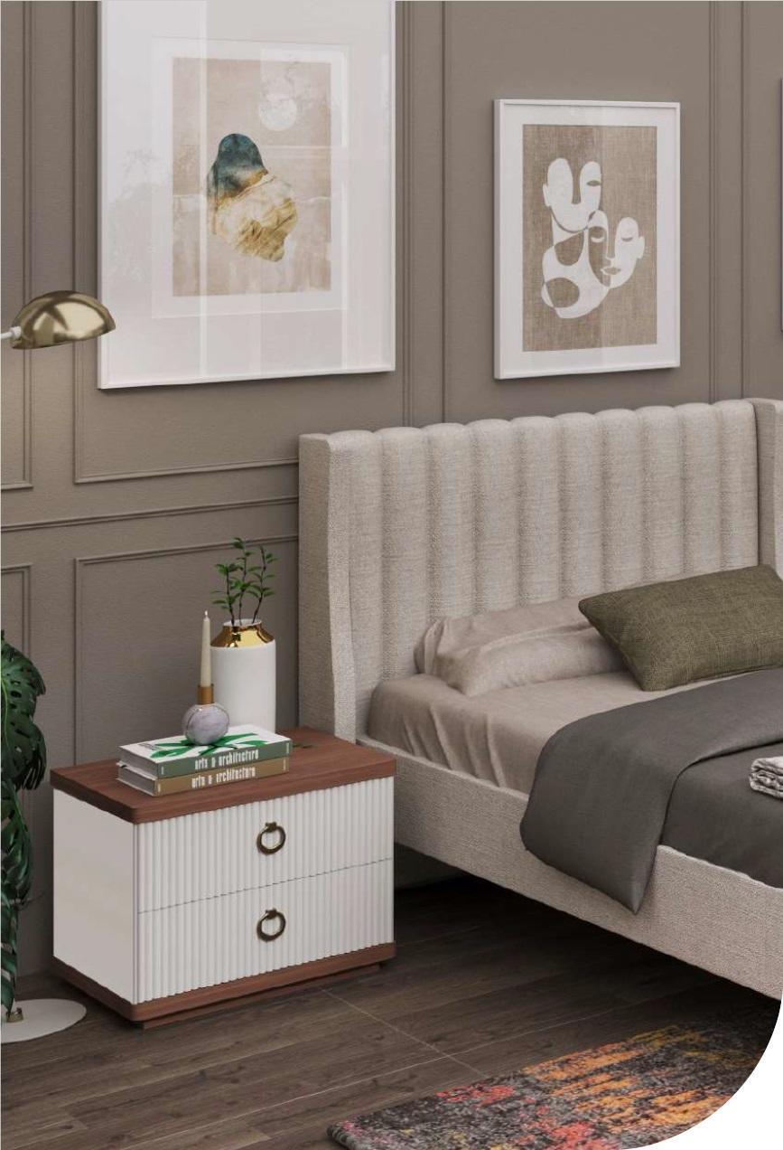 Weißer Nachttisch, Schubladen, Holzmöbel, Luxuriöse Schlafzimmermöbel