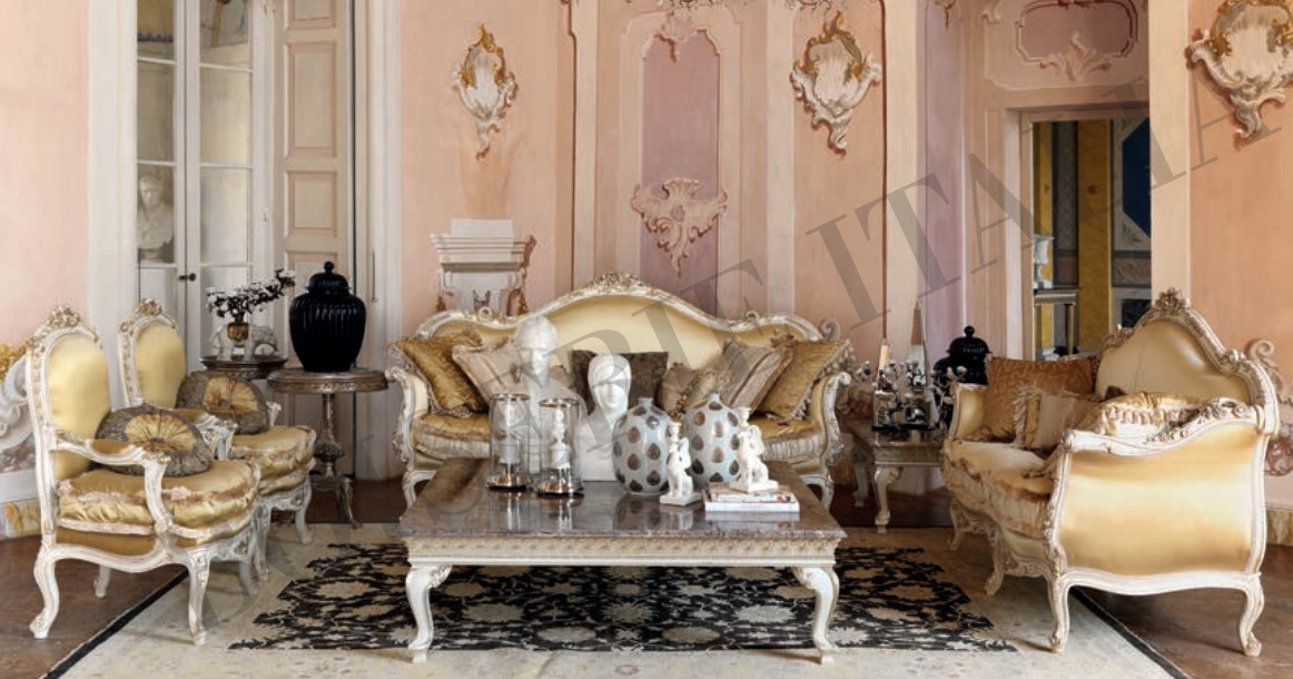 Entdecken Sie die elegante Design-Sofagruppe der Marke Boiserie Italia! Diese Luxus-Sitzgarnitur bestehend aus einem 3-Sitzer Sofa, einem 2-Sitzer Sofa und zwei Sesseln wird in Italien handgefertigt. Die Maße des 3-Sitzers betragen ca. 230 x 75 x 125 cm, während der 2-Sitzer ca. 180 x 75 x 125 cm misst. Die Sessel sind jeweils ca. 70 x 60 x 107 cm groß. Hergestellt aus hochwertigem Holz und in einer eleganten Farbe gehalten, fügt sich diese moderne Sofagarnitur perfekt in Ihr Wohnzimmer ein. Bringen Sie mit diesen exquisiten Möbelstücken ein Stück italienischen Luxus in Ihr Zuhause!