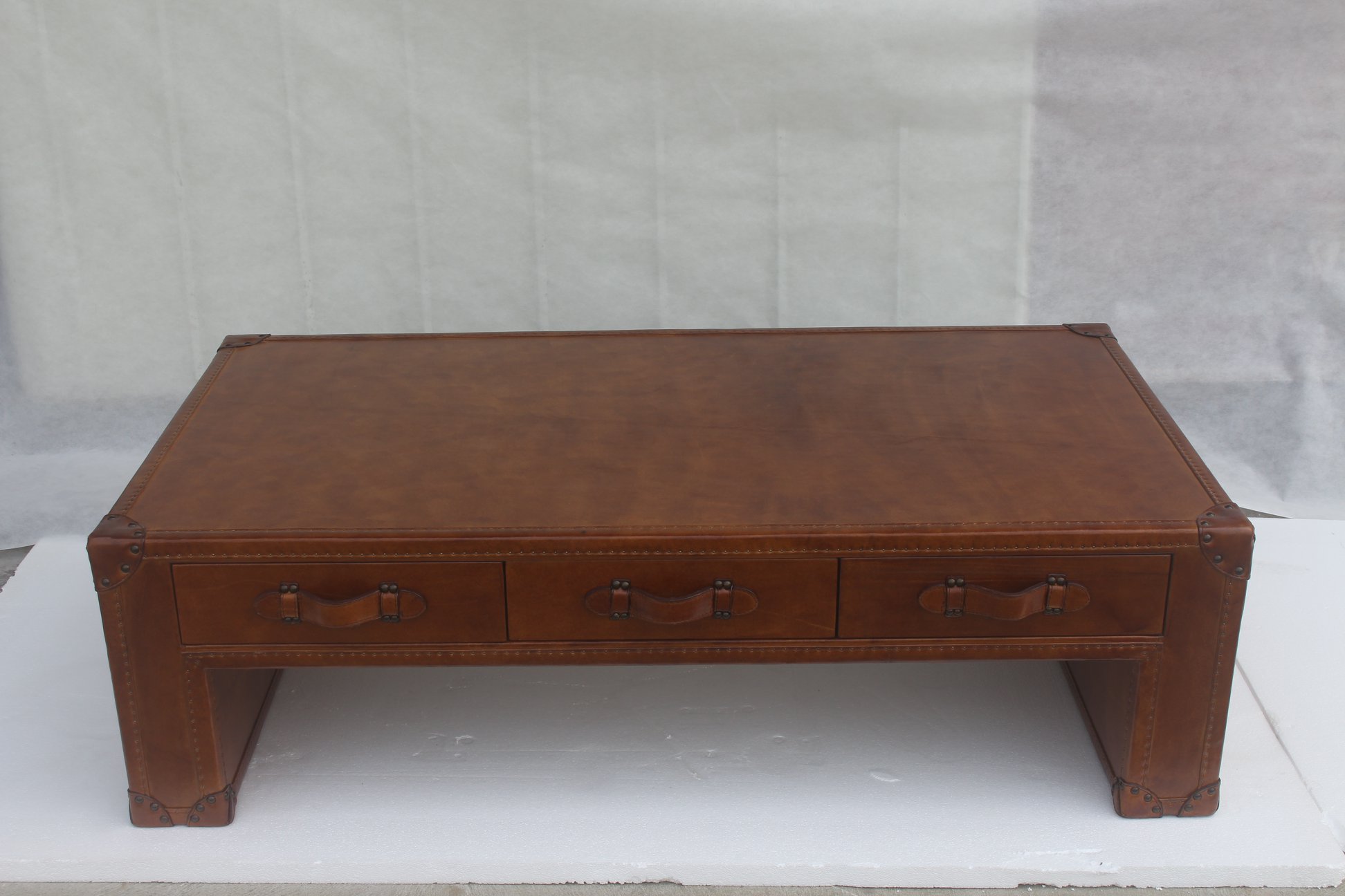 Couchtisch Wohnzimmertisch Truhe Beistelltisch in Vintage Tisch 147x85cm Leder