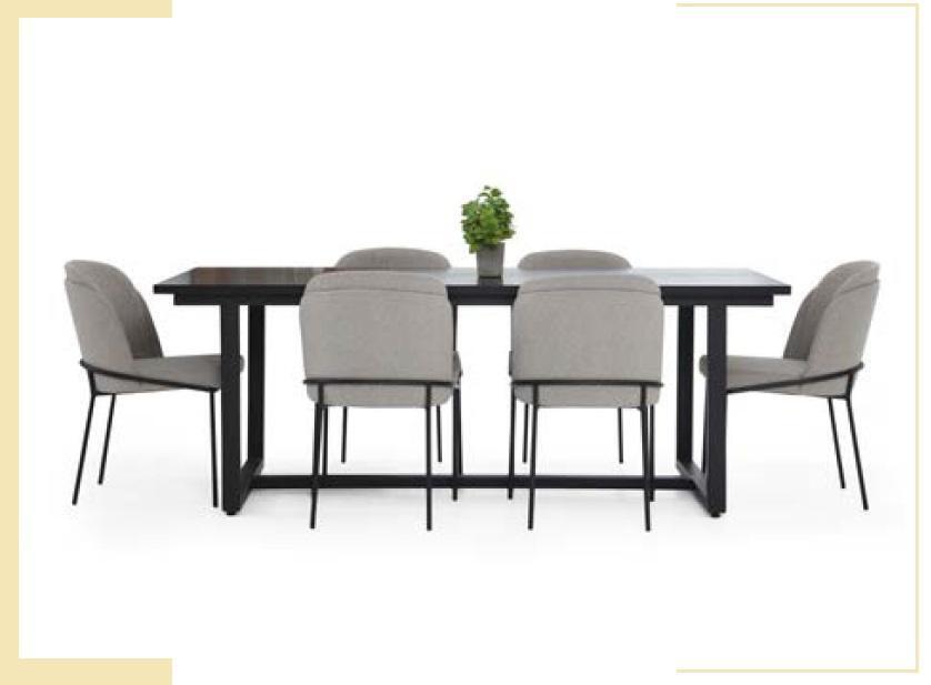 Entdecken Sie unser brandneues 7-teiliges Set für Ihre Esszimmer-Ecke! Dieses moderne Essgruppe-Set besteht aus einem Esstisch und sechs Stühlen, perfekt für gemütliche Mahlzeiten mit Familie und Freunden. Der Esstisch aus Holz hat die Maße ca. 210 x 93 x 77 cm, während die Stühle ca. 50 x 45 x 80 cm messen. In Grau gehalten, passt dieses Set perfekt in jedes Esszimmer und sorgt für ein stilvolles Ambiente. Das hochwertige Material aus Holz und Stoff gewährleistet Langlebigkeit und Komfort. Erneuern Sie Ihren Essbereich mit diesem eleganten Esszimmer-Set von XL Moebel!