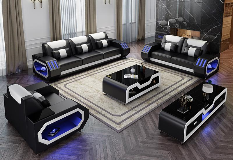 Ledersofa Couch Sofa Garnitur 3+1+1 - Beleuchtete Designer Couchen Neu