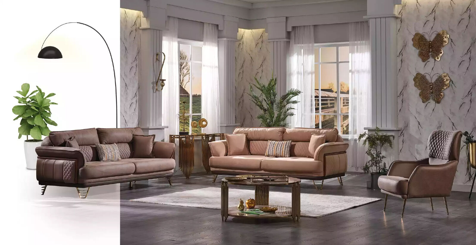 Braune Couchgarnitur Luxus 3+3+1 Sitzer Wohnzimmer Möbel Sofas Sessel