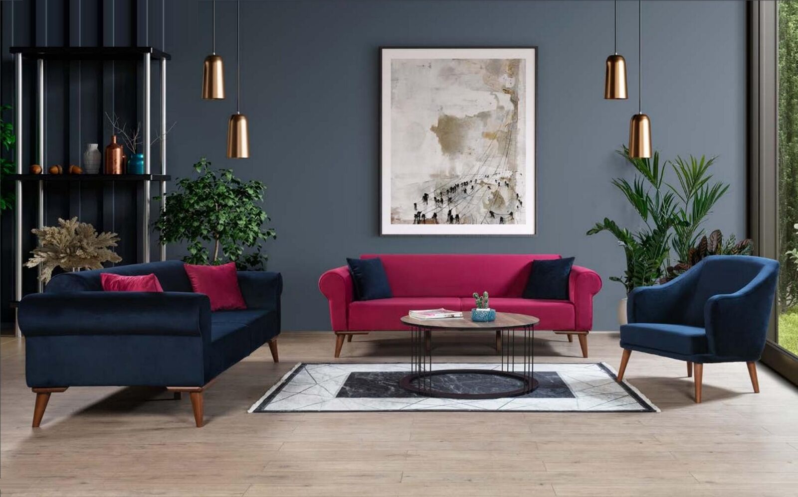 Entdecken Sie unsere moderne Sofagarnitur 3+3+1 Sitz Design Sofa Polster Couchen Couch! Die hochwertige Polstercouch besteht aus zwei 3-Sitzer Sofas und einem gemütlichen Sessel, perfekt für Ihr Zuhause. Mit Maßen von ca. 228 x 92 x 77 cm für die Sofas und ca. 73 x 75 x 85 cm für den Sessel, bietet diese Garnitur viel Platz zum Entspannen. Das Design in der abgebildeten Farbe ist zeitlos und elegant. Aber keine Sorge, Sie können die Polstercouch auch in einer Vielzahl von anderen Farben wie Ocker, Marineblau, Terrakotta und vielen mehr erhalten - fragen Sie einfach bei uns an! Hergestellt aus hochwertigem Textil und Holz, bietet diese Sofagarnitur nicht nur Komfort, sondern auch Langlebigkeit. Bringen Sie mit dieser modernen Couch ein stilvolles Statement in Ihr Wohnzimmer. Gönnen Sie sich und Ihrer Familie ein neues Lieblingsstück für gemütliche Abende!