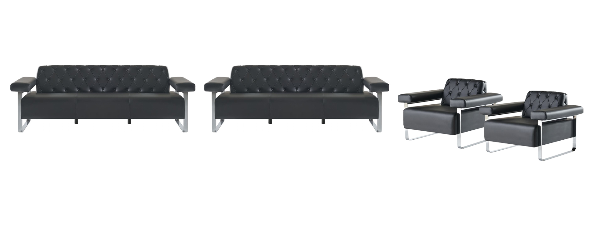 Sofas Komplett Schwarz Einfarbig 4tlg Set 3-Sitzer 2-Sitzer Modern Stil